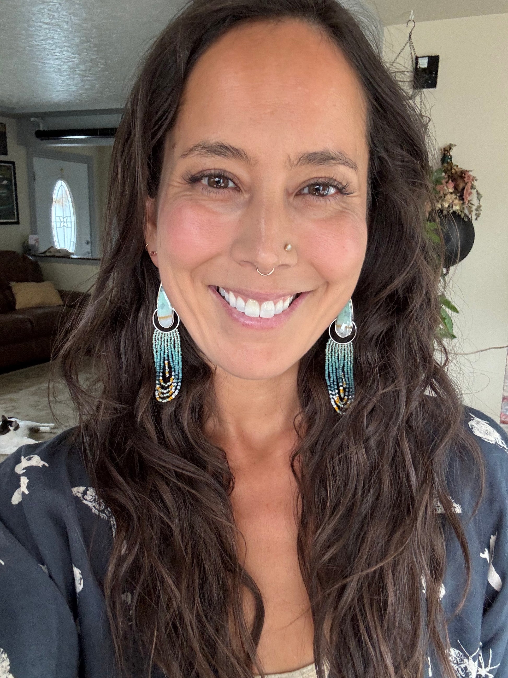 Each pair of earrings is metalsmithed by hand in my Montana studio. From shaping the bezels and soldering the frames to stitching every bead with intention, this is slow craft meant to be felt.