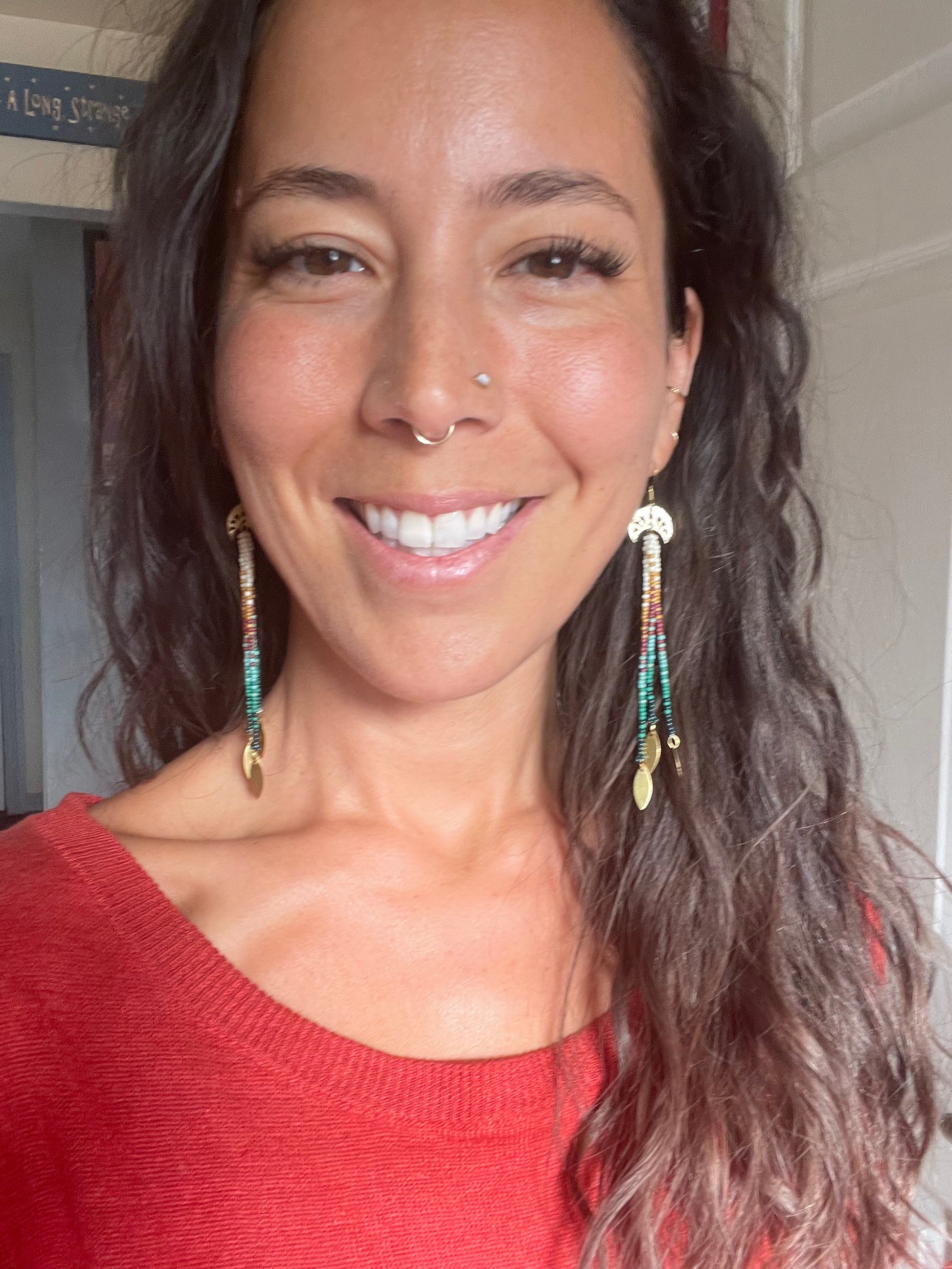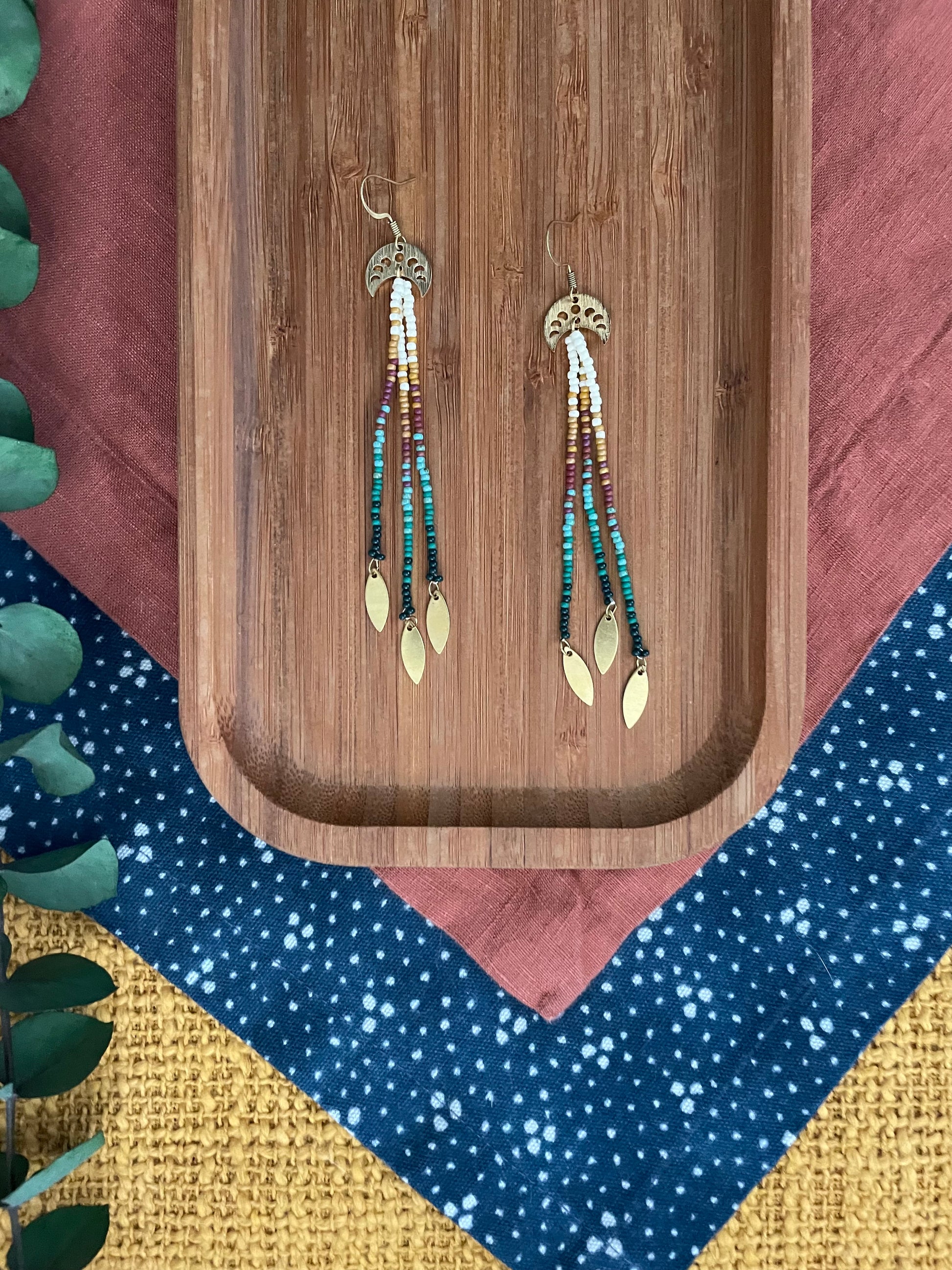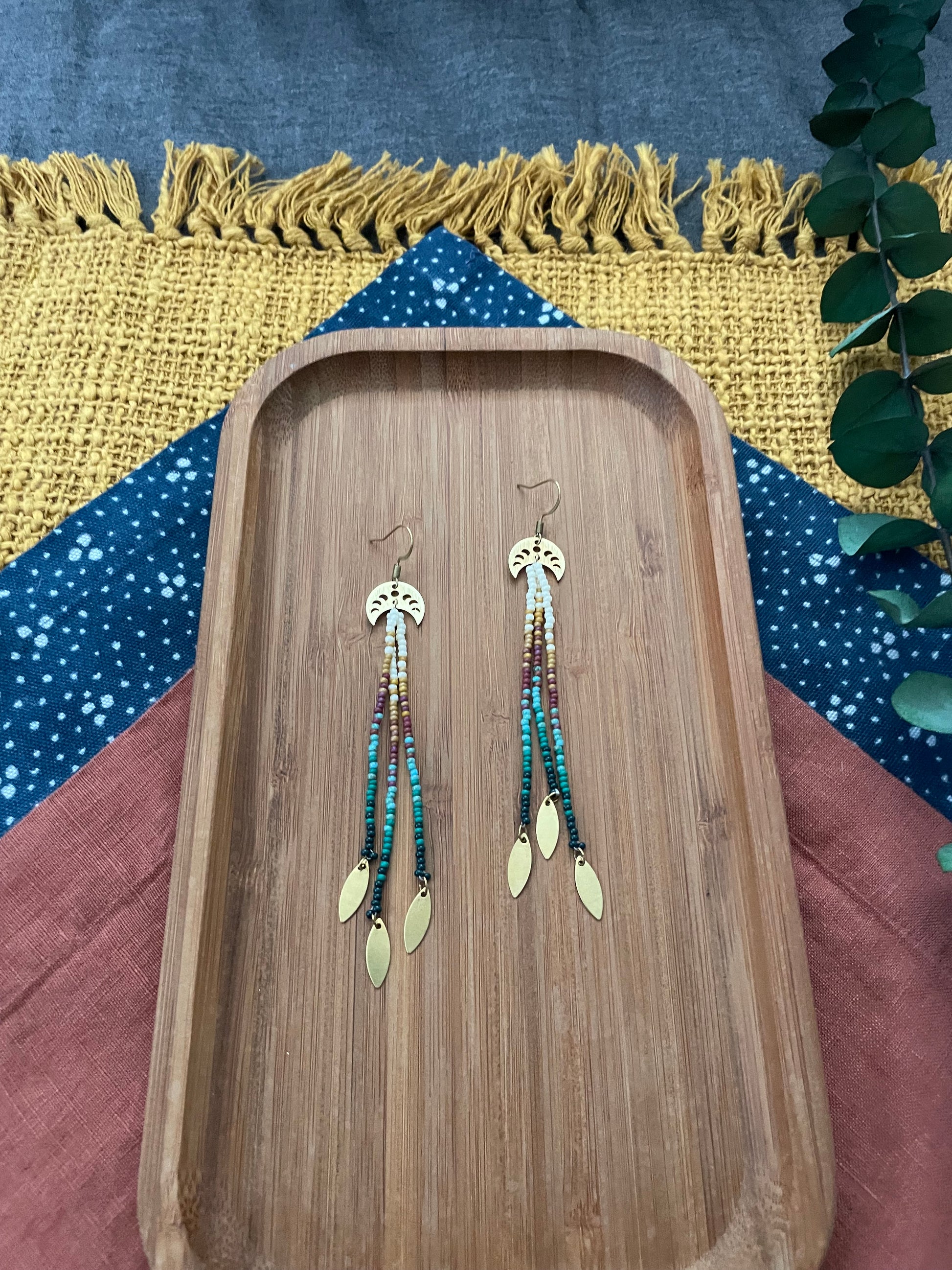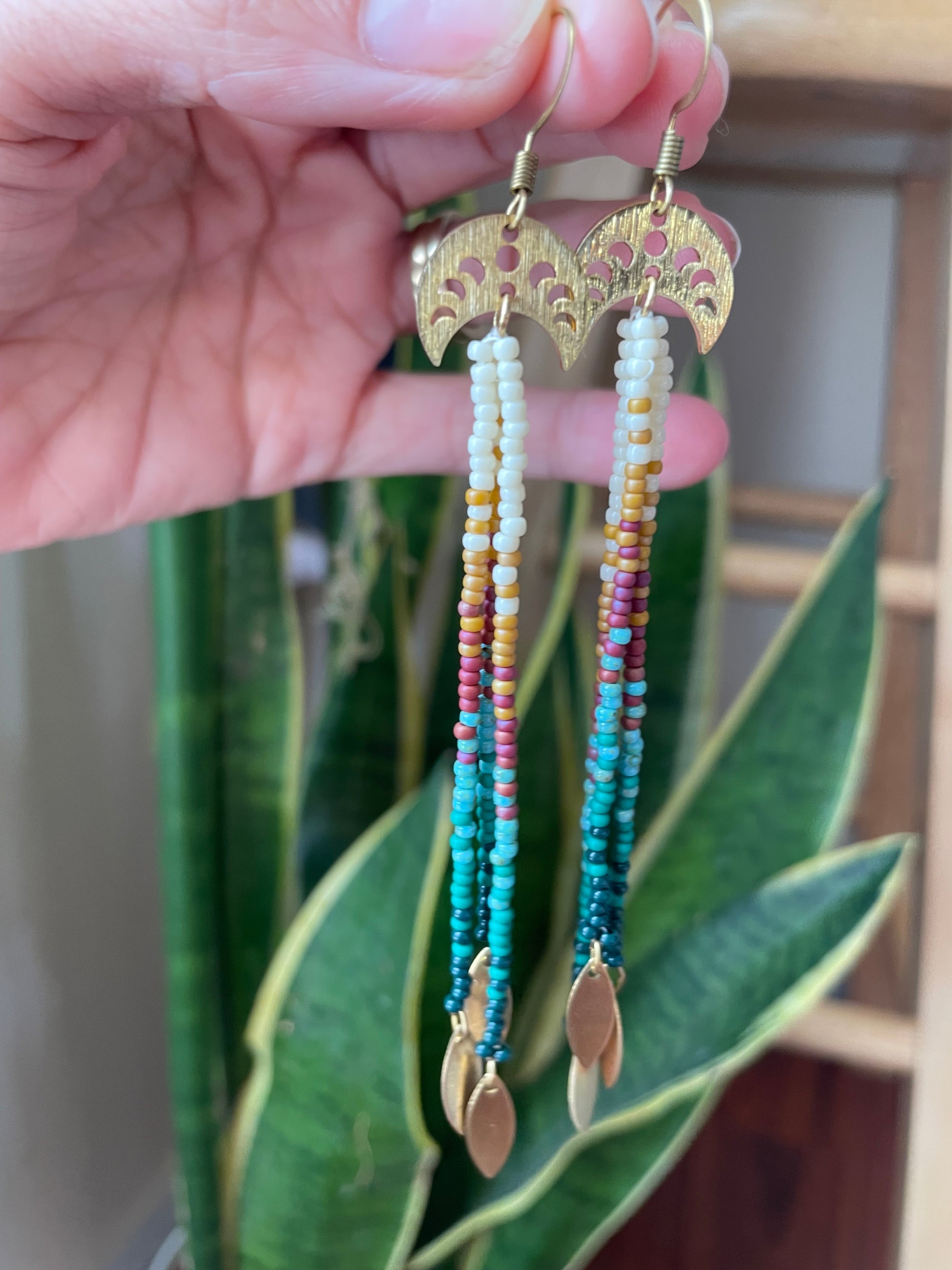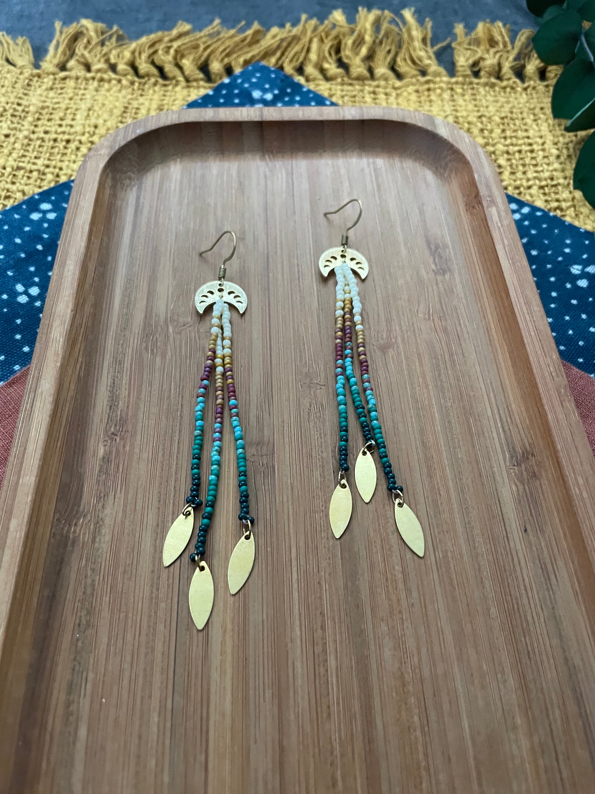 Caribbean Collection 🌺 Hammered gold findings with gold fringe attachments. A beautiful blend of mixed materials. Metal and glass, light and bold goddess adornments.