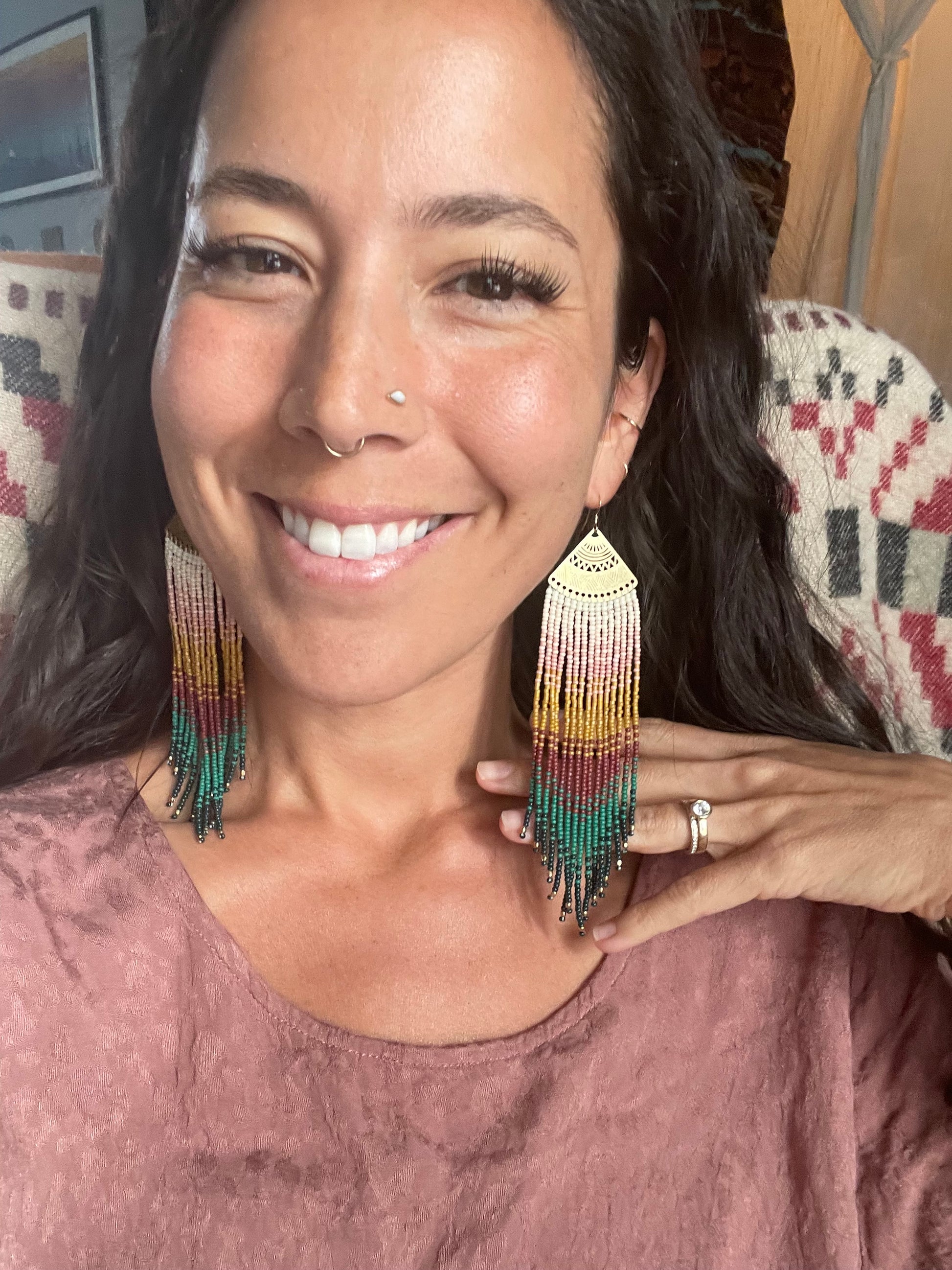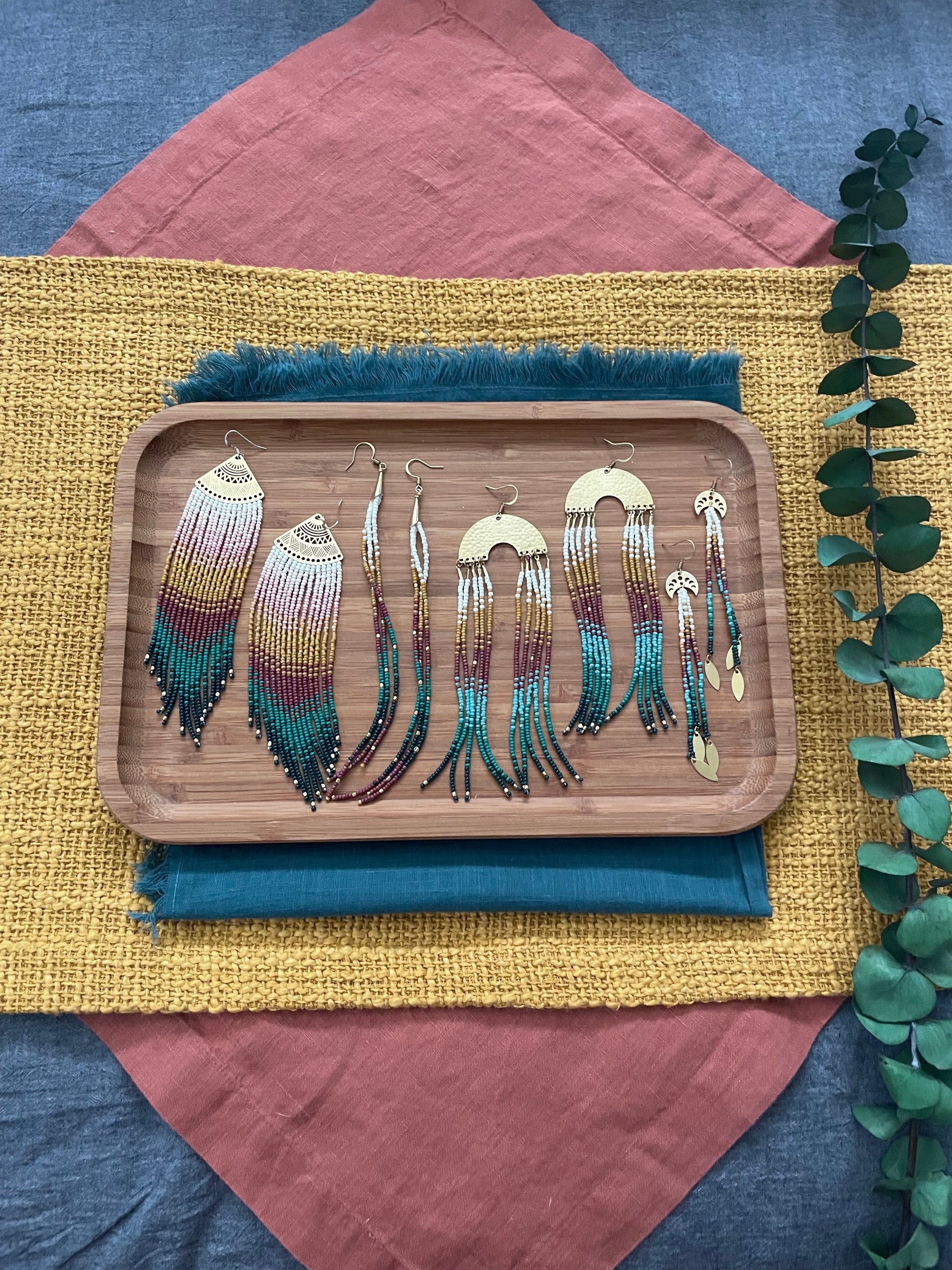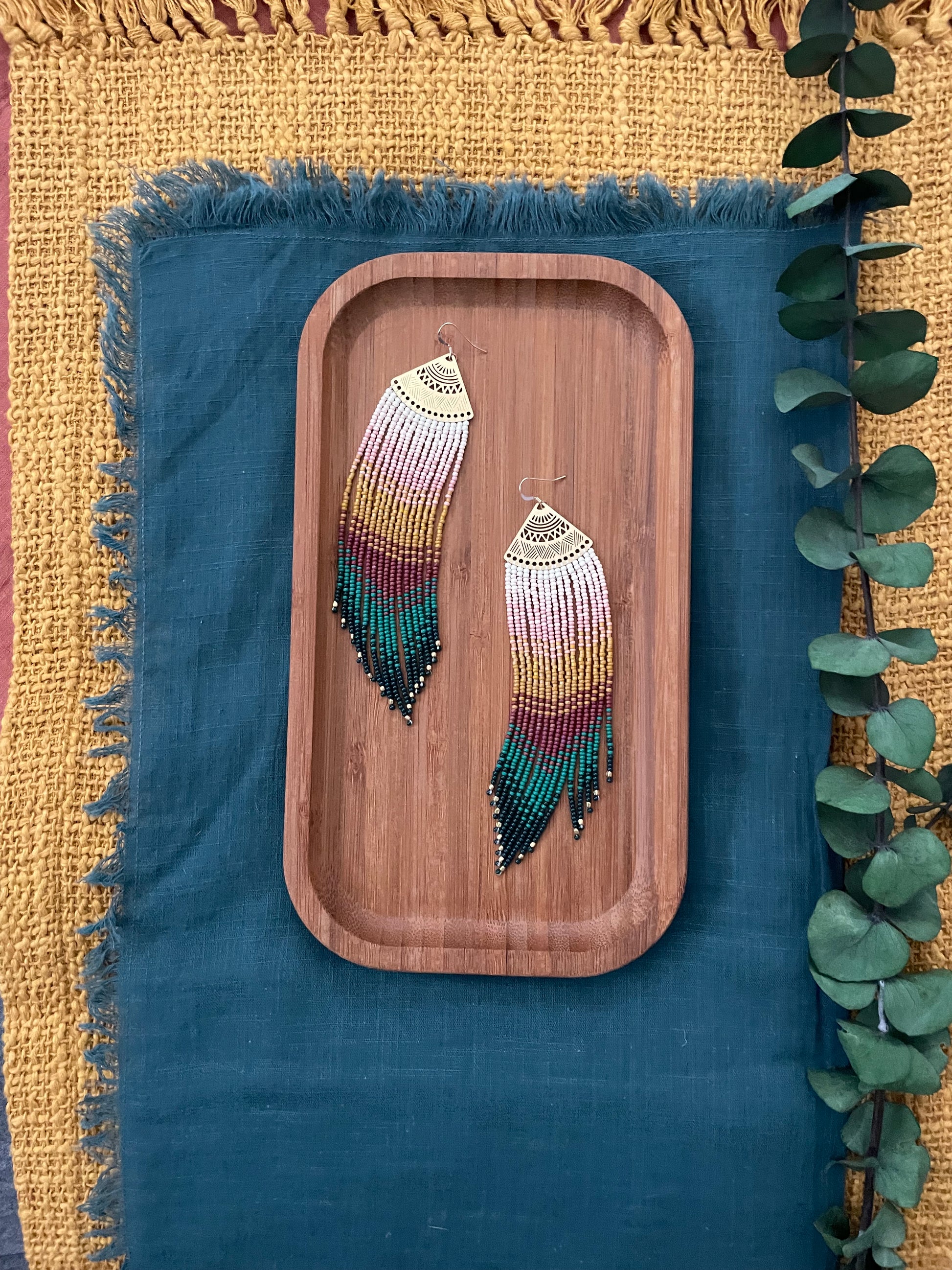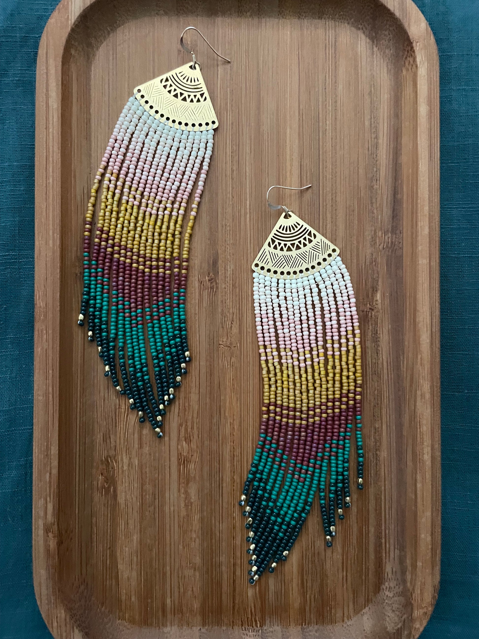 Caribbean Collection 🌺 Subtle peach, to coral pink, to sunset yellows ombré to a bold and beautiful dusky bright fringes with gold accents.