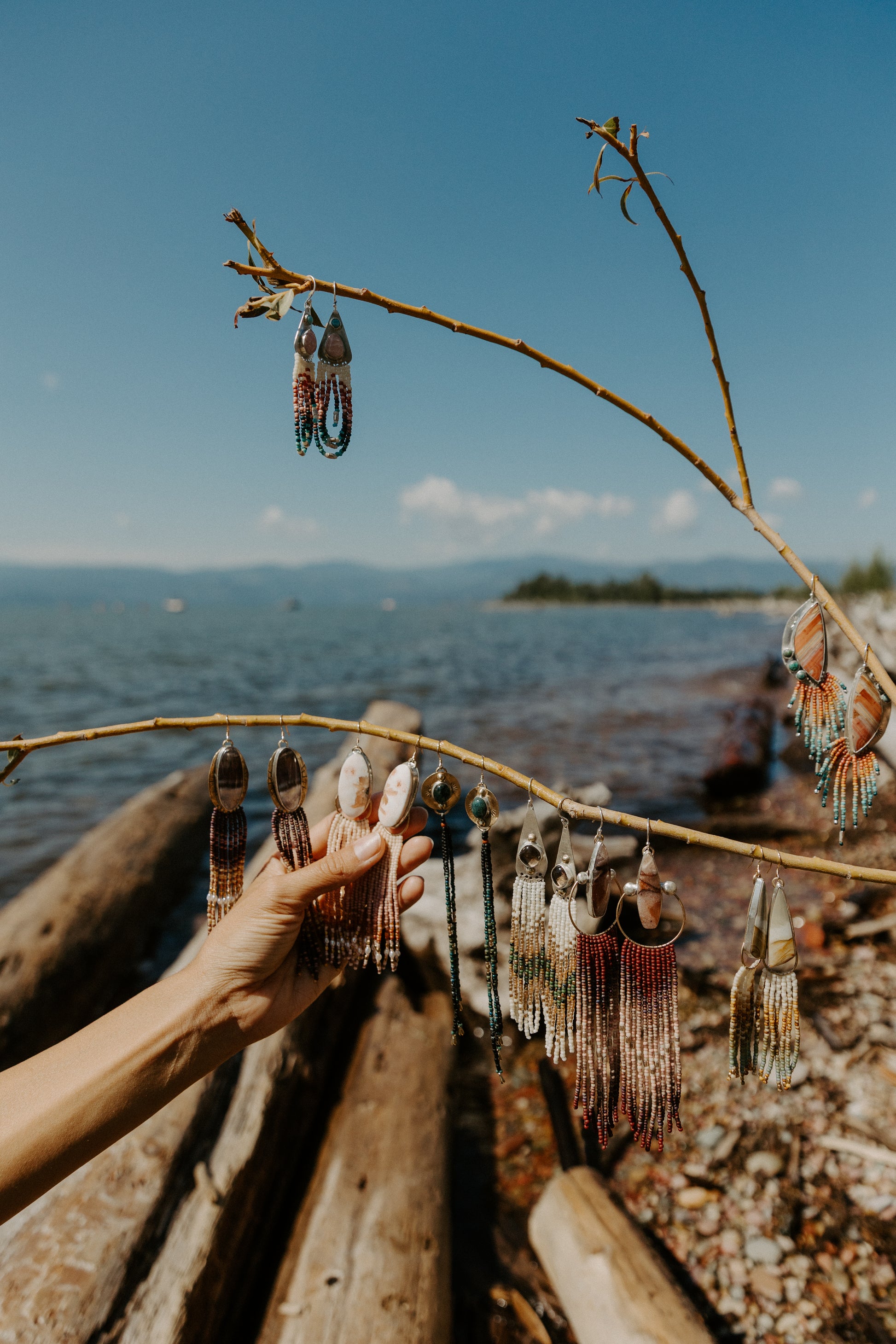 Each pair of earrings is metalsmithed by hand in my Montana studio. From shaping the bezels and soldering the frames to stitching every bead with intention, this is slow craft meant to be felt.