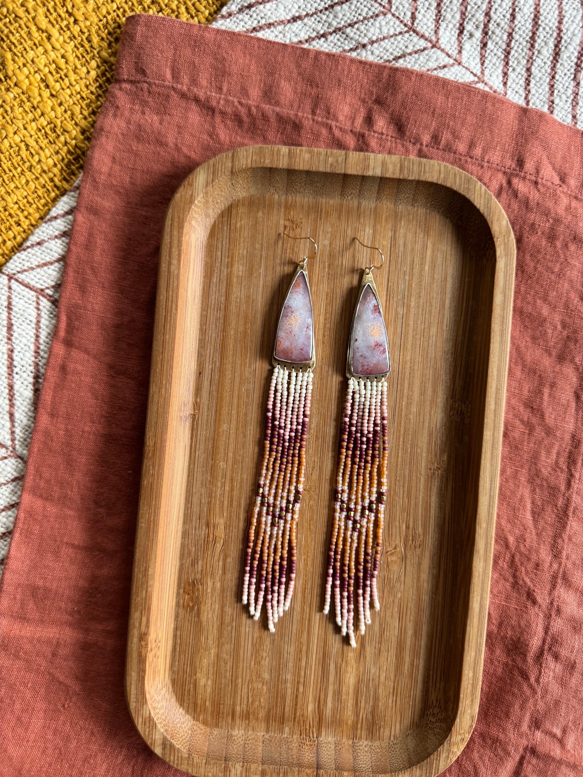 Sunset Coral Fringe Earrings | Fossilized Coral + Warm Desert Tones